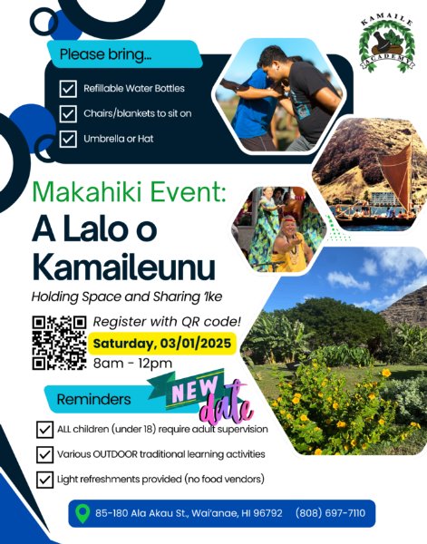 {"text":"Welcome to Kamaile Academy • At our school haumāna learn, grow, and develop into resourceful community contributors who exhibit cultural pride, achievement, and pono values. E Aloha - Respect Self, Respect Others, Respect Place","delay":"35"}