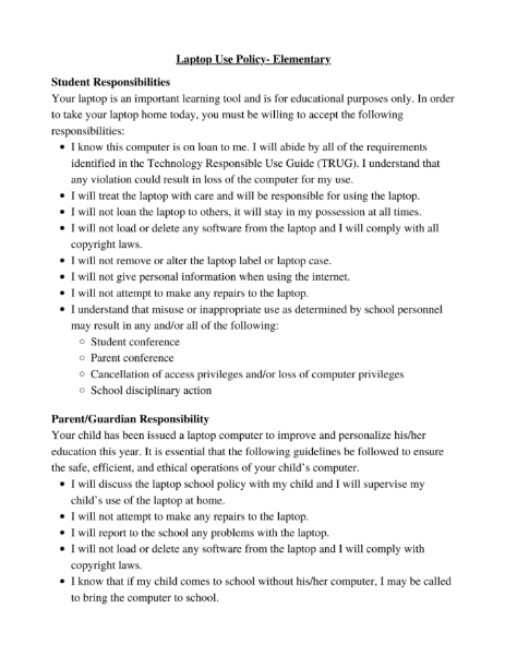 - Laptop Use Policy (elementary)
