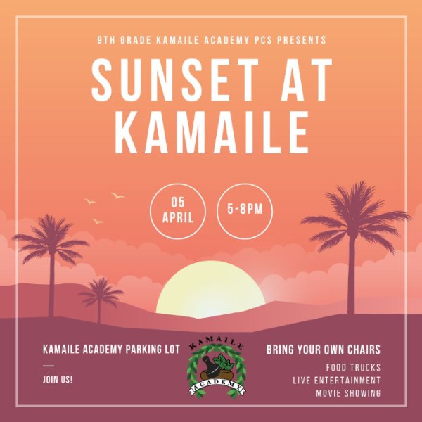 Join us for this year's Sunset at Kamaile! There will be food trucks, live entertainment, and a movie showing so save the date and we look forward to seeing you there!