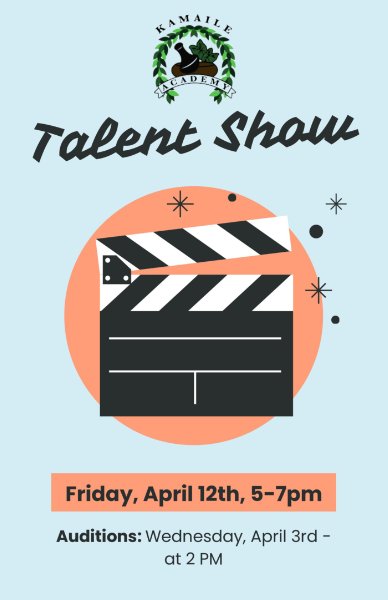 We have a Talent Show coming up on Friday, April 12th from 5-7pm, hosted by Mrs. Ceri Hoff! Auditions are being held on Wednesday, April 3rd at 2pm in P9. Please encourage haumāna of all grades to sign up and participate. There are some really great prizes that include an Apple iPad, a Block Rocker Speaker + microphone, and a new Kala Ukulele. See the flyer for more information.