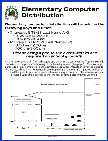 You will enter the admin front office gate and check-in at a tent near the flagpole. Please bring a pen to the event, and be sure to wear your mask (required to be on school grounds) for everyone's safety. Mahalo!