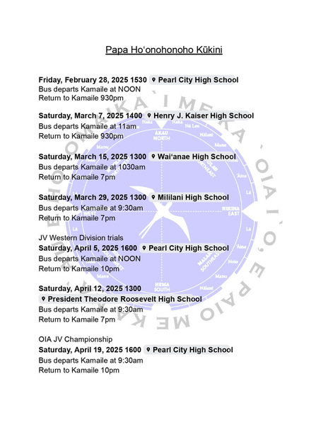 Kūkini Season Schedule